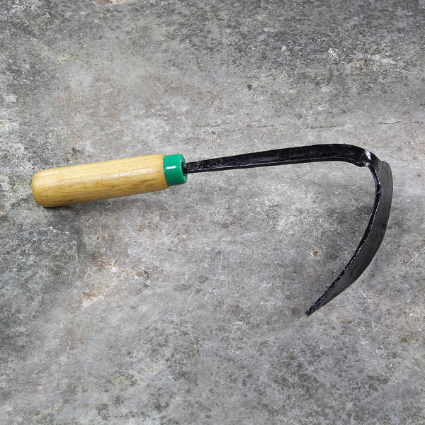 The Korean weeder cultivator has a hand-forged steel blade and fitted with a hardwood handle.